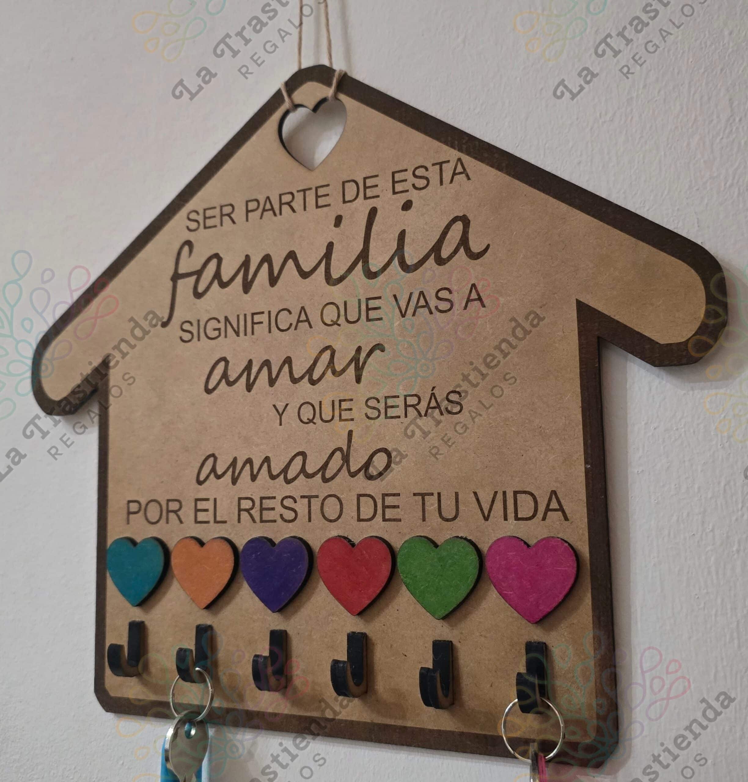 Mantén tus llaves siempre organizadas y dale un toque especial a tu hogar con este cuelgallaves en forma de casita. Diseñado con corazones de colores y una frase entrañable, es el detalle perfecto para recordar que el amor es lo que mantiene unida a la familia.